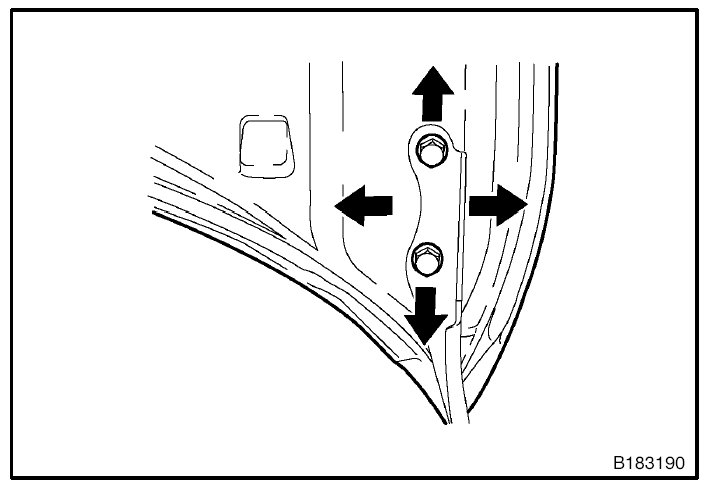 1. Using SST, loosen the hinge bolts on the vehicle body and adjust the door position.