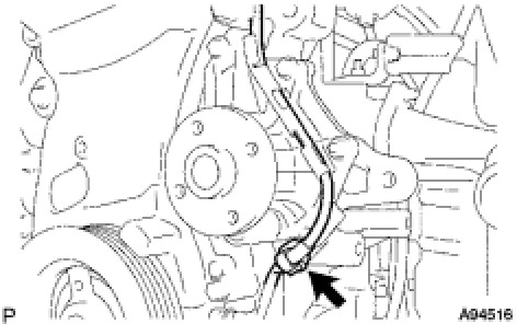 (d) Confirm that the wire harness of the crankshaft position sensor is secured to the wire harness clamp bracket through the back of the rib of the timing chain cover.