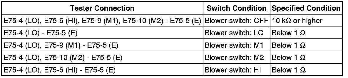 5. INSPECT NO. 2 HEATER CONTROL (BLOWER SWITCH)
