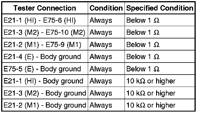 (e) Measure the resistance according to the value(s) in the table below.