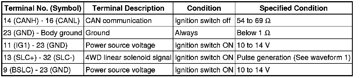 If the result is not as specified, the 4WD control ECU may have a malfunction.