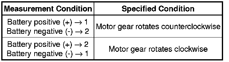 (1) Apply battery voltage to connector terminals 1 and 2.