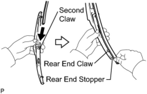 (b) Insert the wiper rubber from the front end of the wiper blade to the rear end through the second claw.