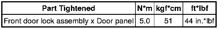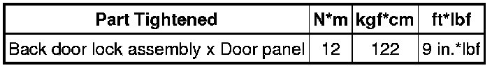 SPECIFICATIONS: DOOR LOCK: TORQUE SPECIFICATIONS