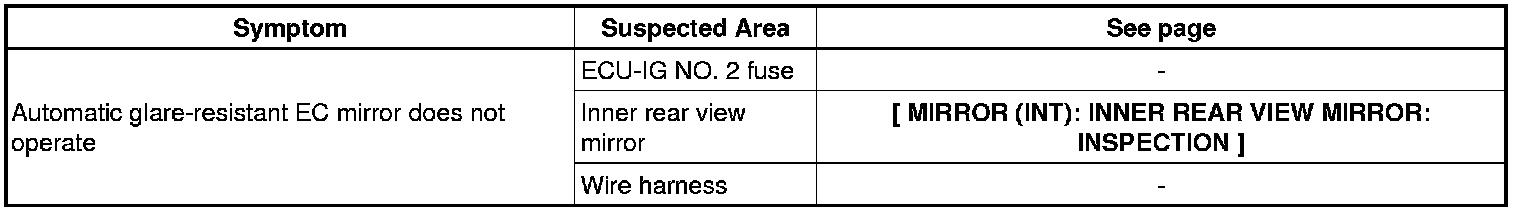 MIRROR (INT): INNER REAR VIEW MIRROR: PROBLEM SYMPTOMS TABLE