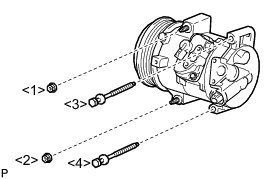 (b) Install the compressor assembly with pulley with the 2 bolts and the 2 nuts.