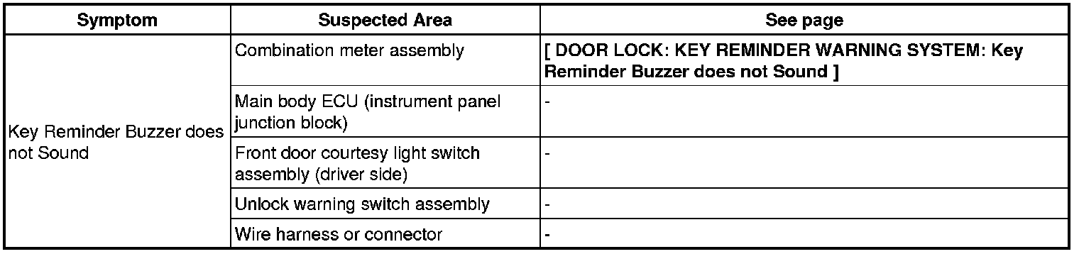 DOOR LOCK: KEY REMINDER WARNING SYSTEM: PROBLEM SYMPTOMS TABLE