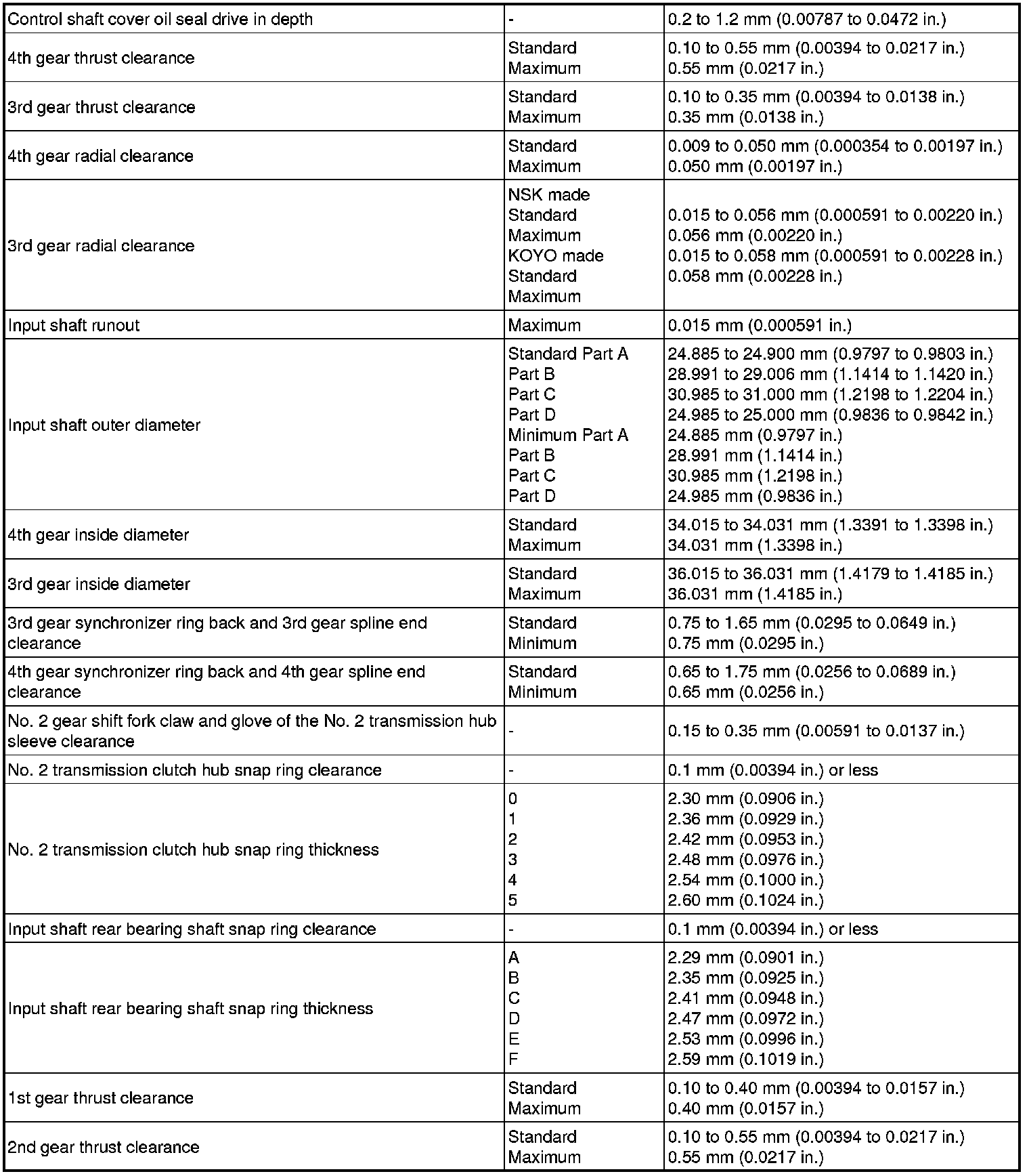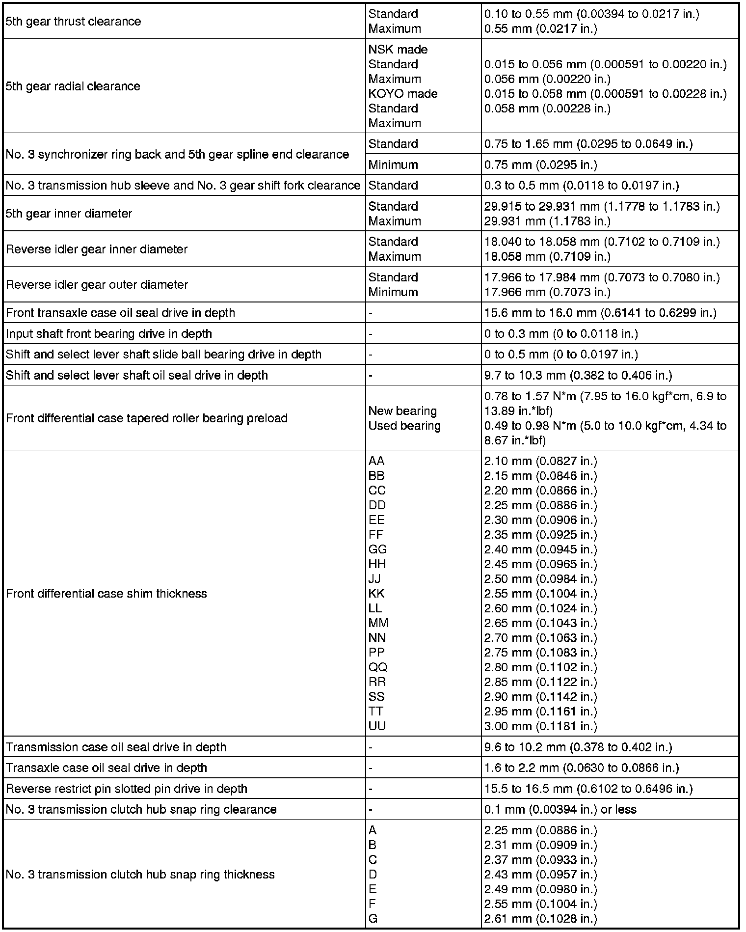 SPECIFICATIONS: C59 MANUAL TRANSMISSION / TRANSAXLE: SERVICE DATA