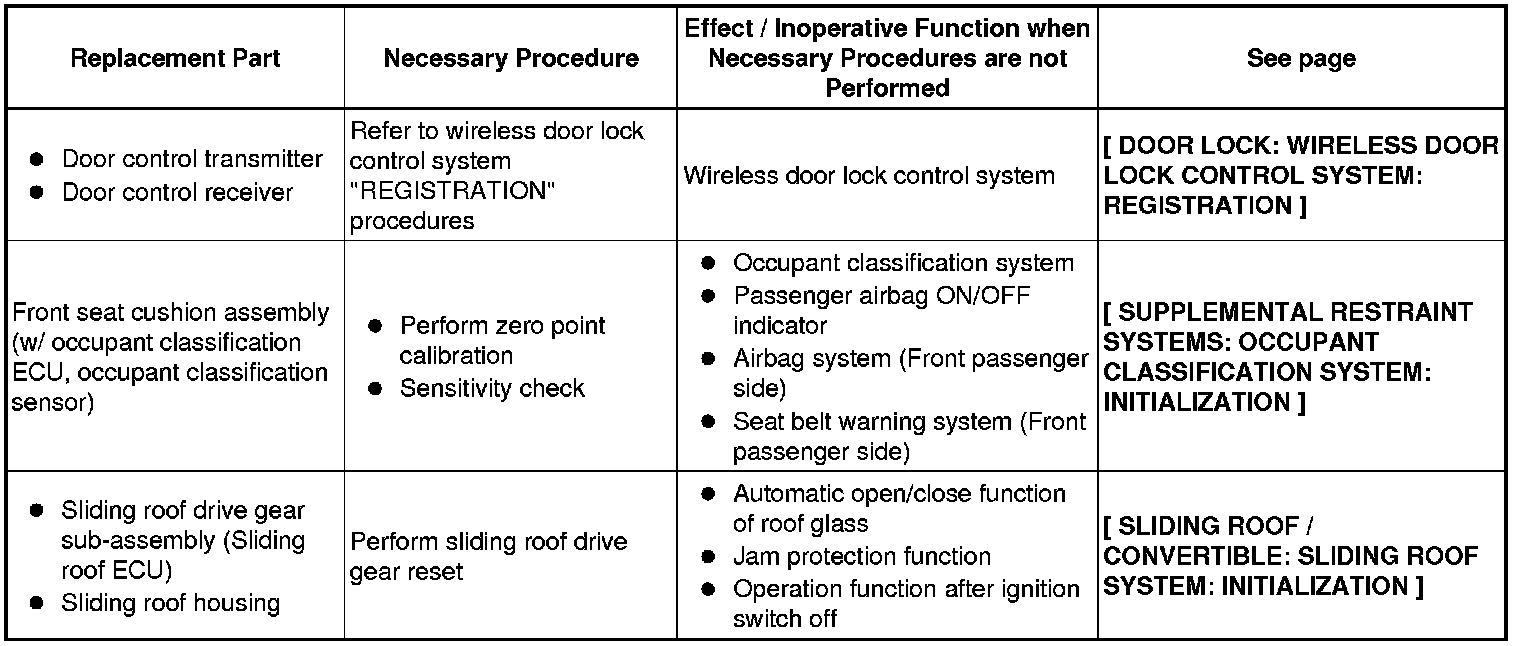 PROCEDURES NECESSARY WHEN ECU OR OTHER PARTS ARE REPLACED