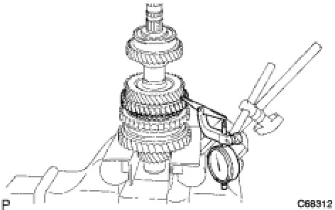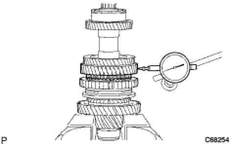 (a) Using a dial indicator, measure the 2nd gear thrust clearance.