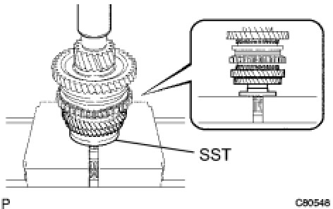 (a) Using SST and a press, install the 4th driven gear onto the output shaft.