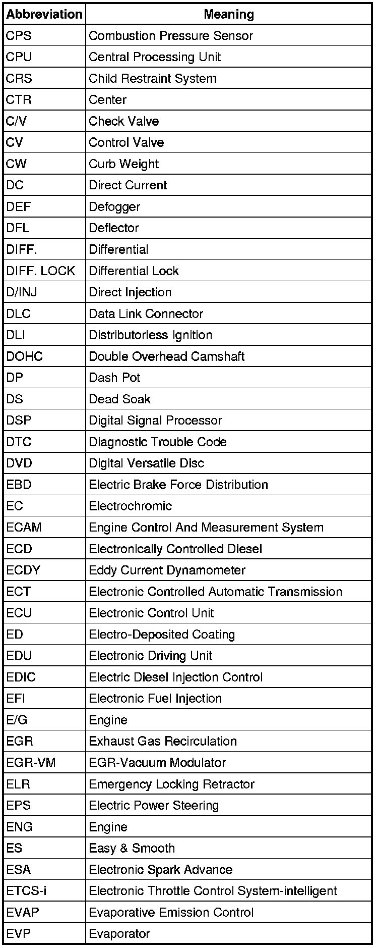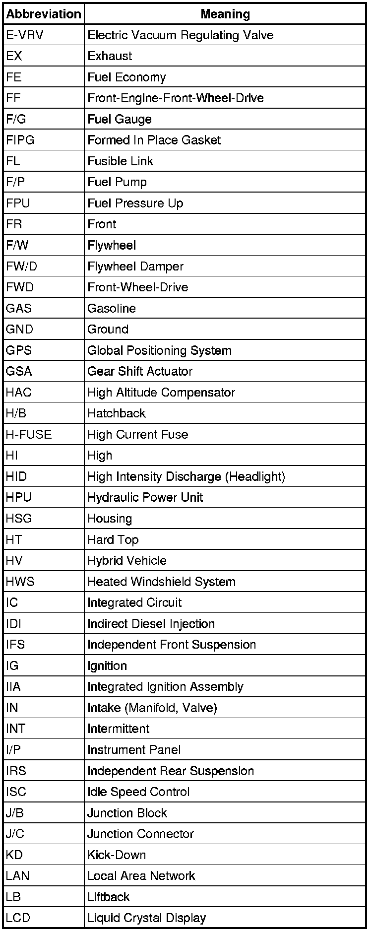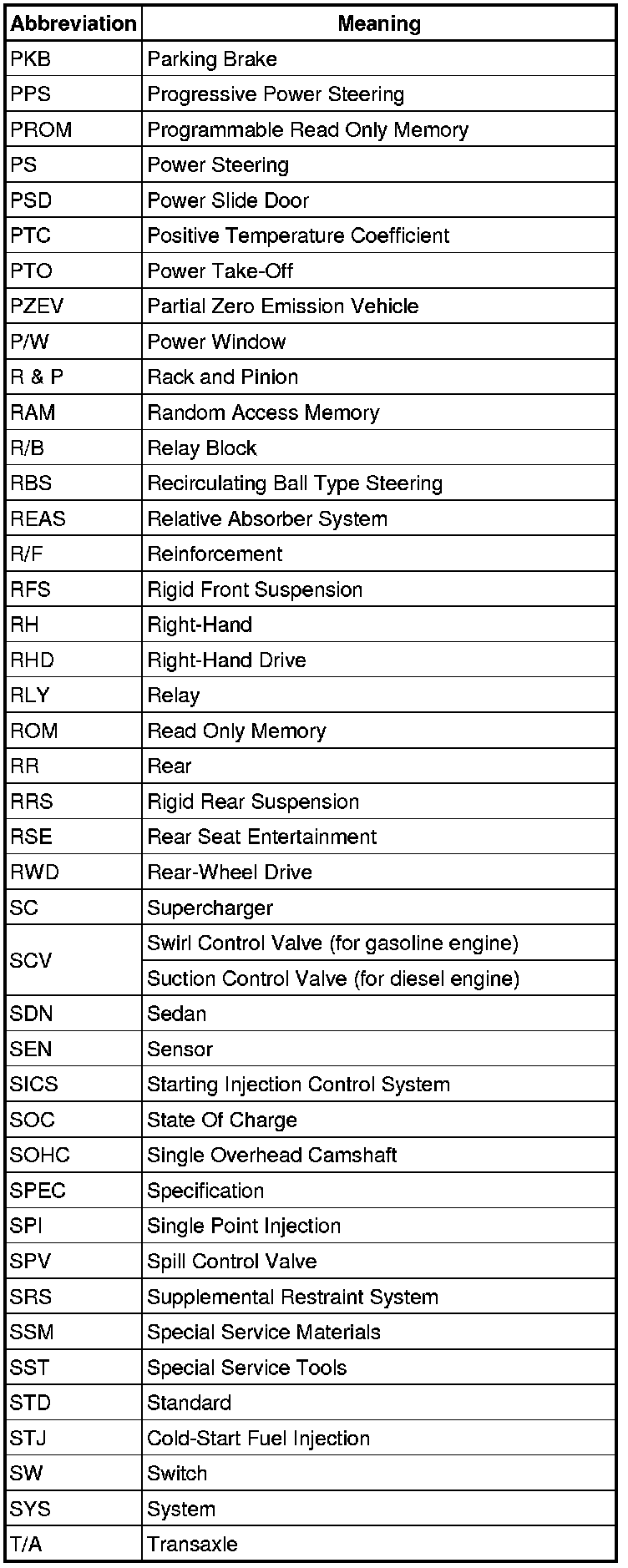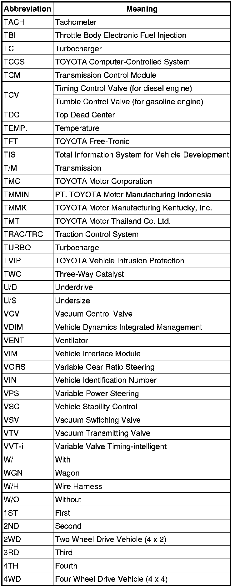 Terms - Abbreviations Used In Service Procedures