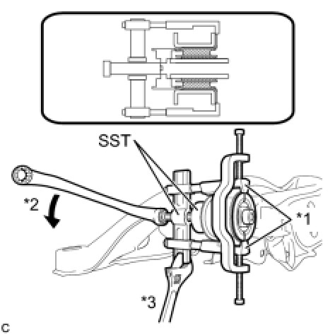 (a) Using SST, remove the rear suspension member body mounting front cushion.