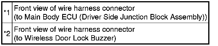 In some cases, wireless door lock control functions are normal but the hazard warning light and/or wireless door lock buzzer answer-back function(s) does not operate. In such cases, the main body ECU (driver side junction block assembly) hazard warning light and wireless door lock buzzer signal outputs may be malfunctioning.