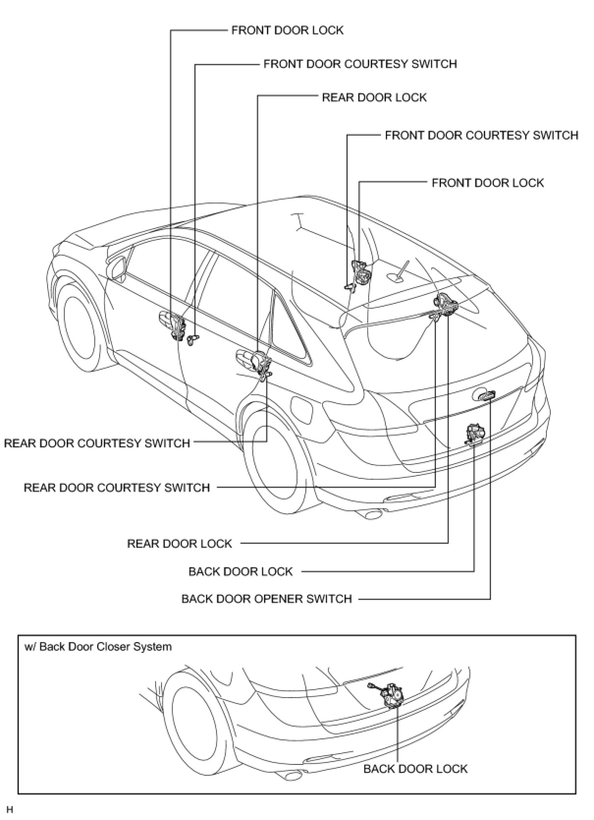 DOOR LOCK: POWER DOOR LOCK CONTROL SYSTEM: PARTS LOCATION
