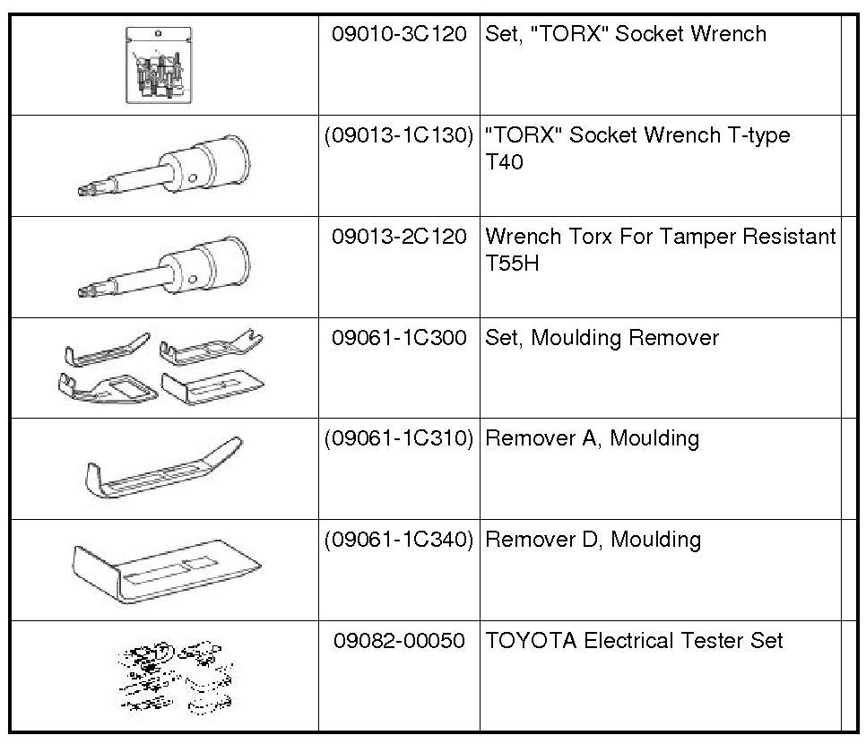 PREPARATION: SEAT: RECOMMENDED TOOLS
