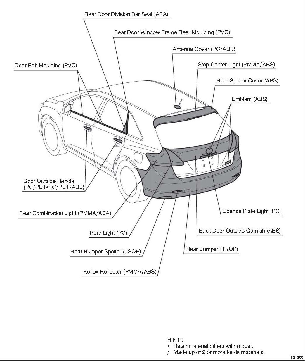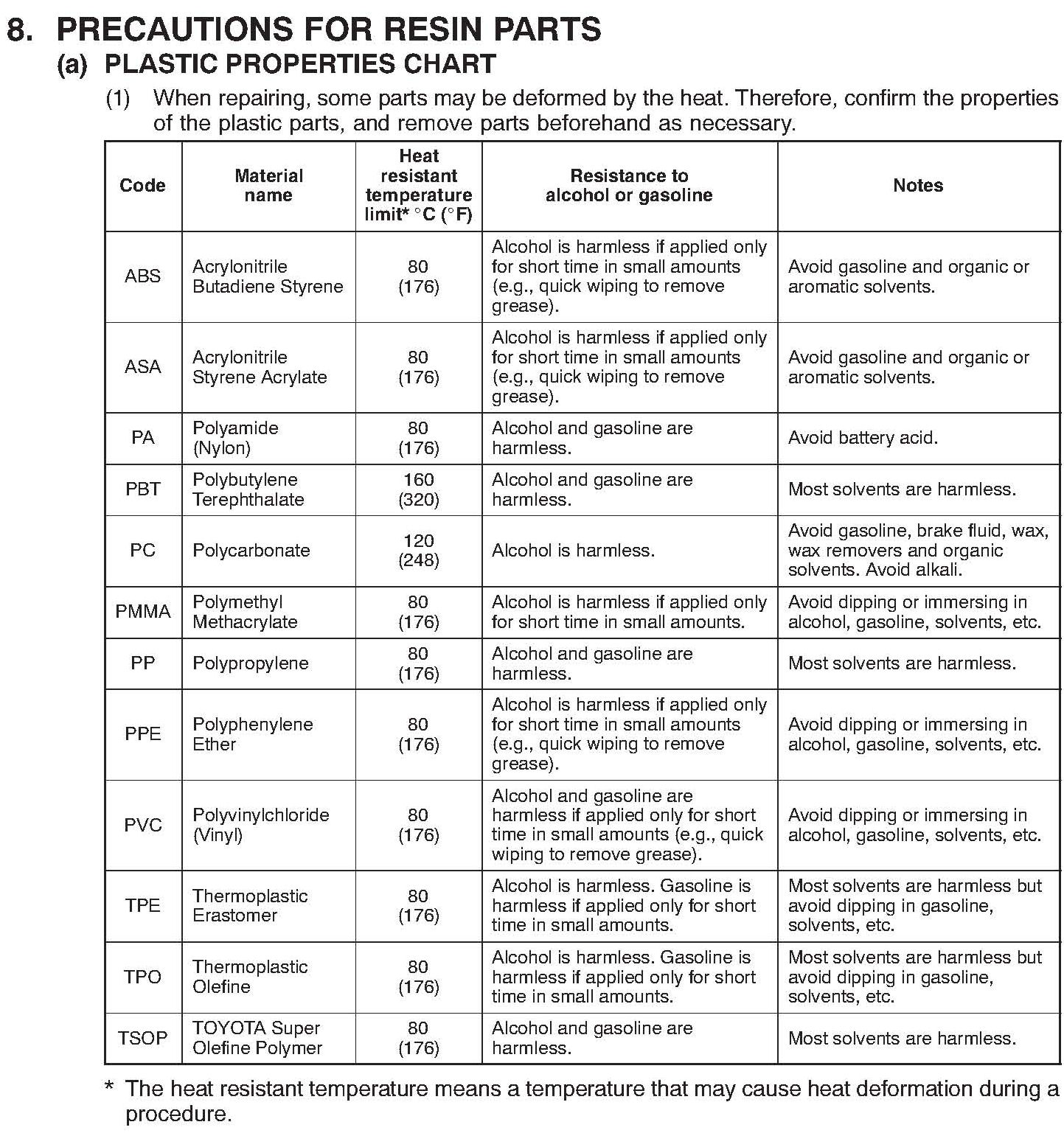 PRECAUTIONS FOR RESIN PARTS