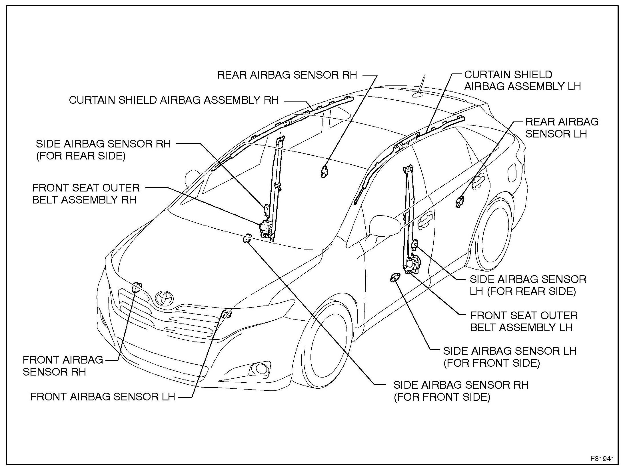 2. Do not allow the front airbag sensors, side airbag sensors, rear airbag sensors, or center air-bag sensor to become heated to high temperatures.