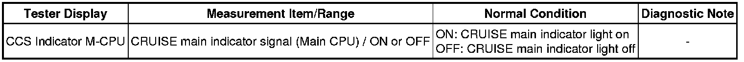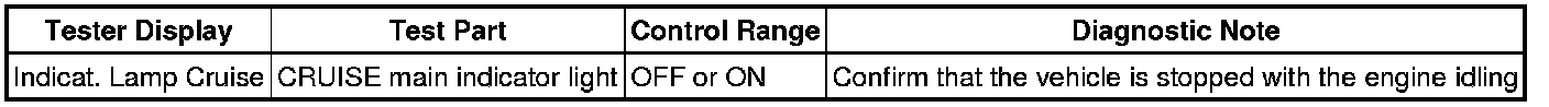 (e) Check the Data List for proper functioning of the CRUISE main indicator light.