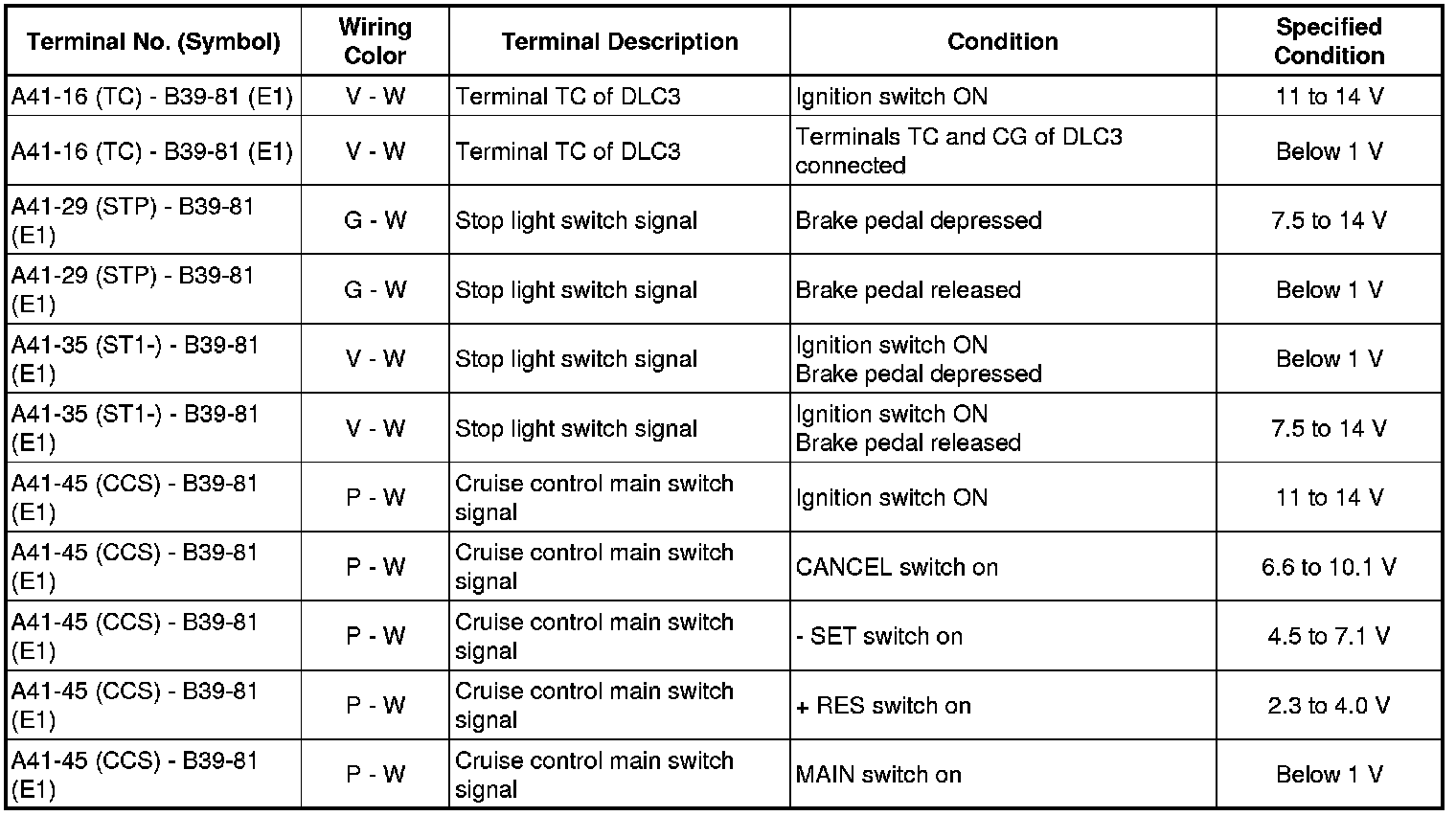 : CRUISE CONTROL SYSTEM: TERMINALS OF ECM