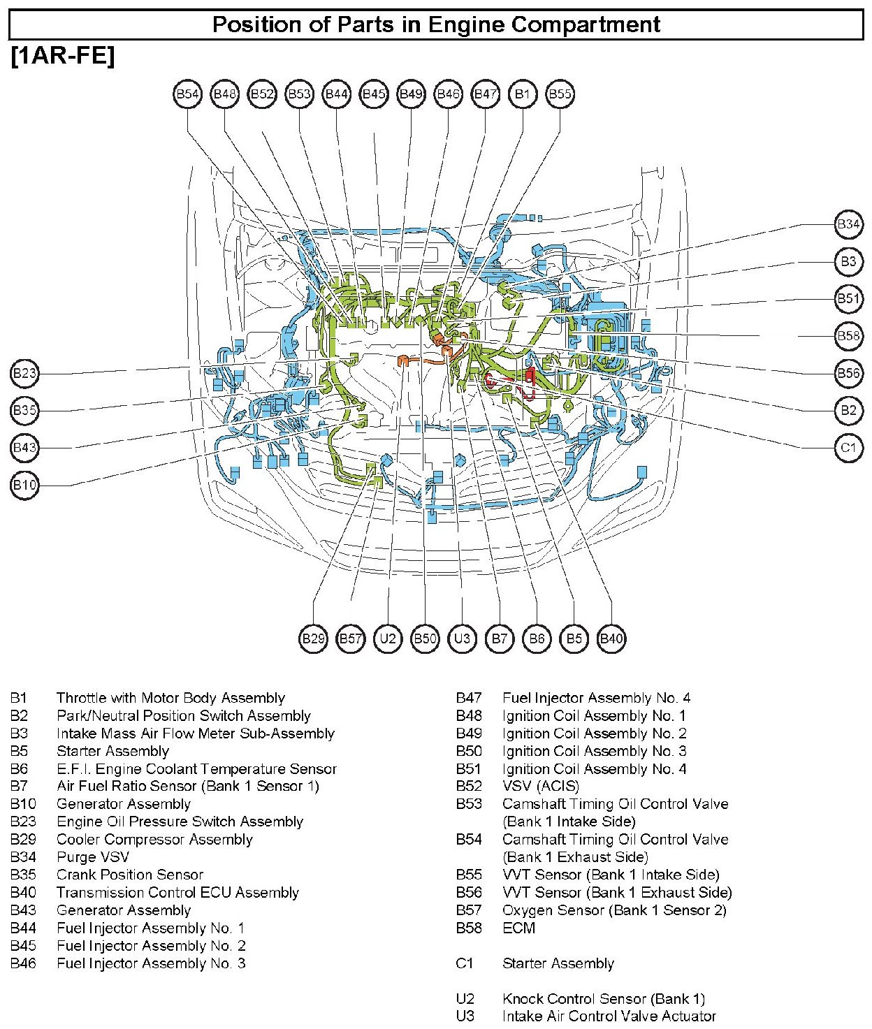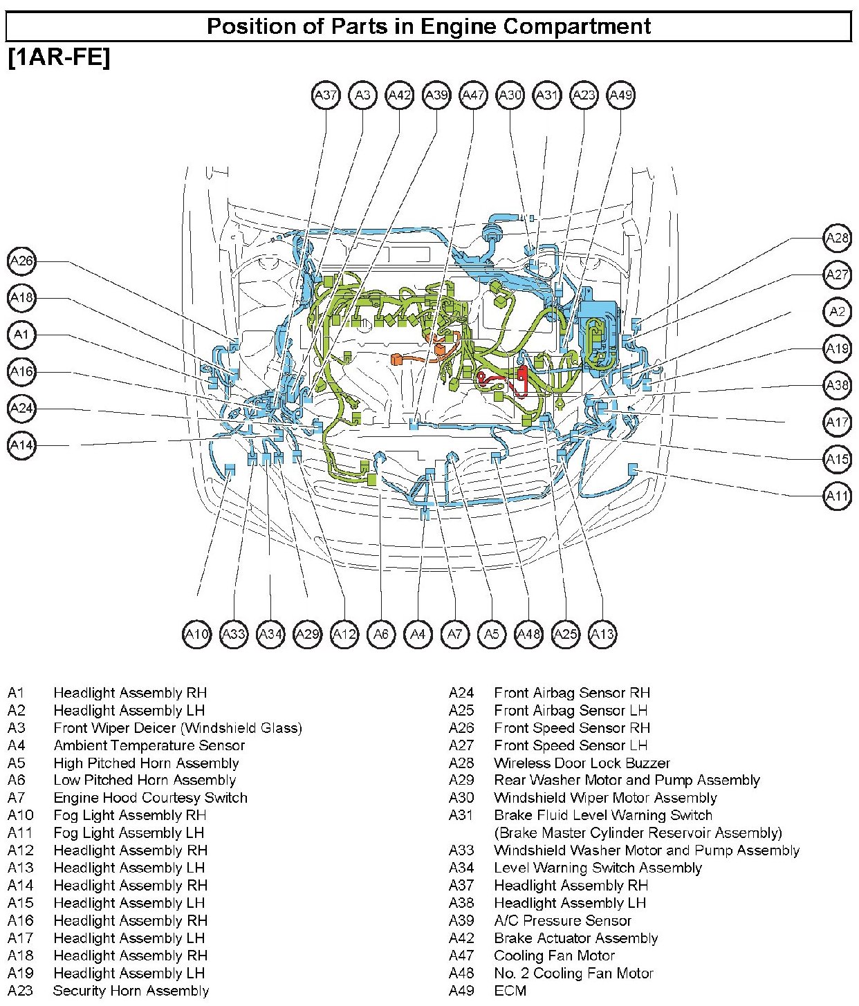 Position of Parts In Engine Compartment