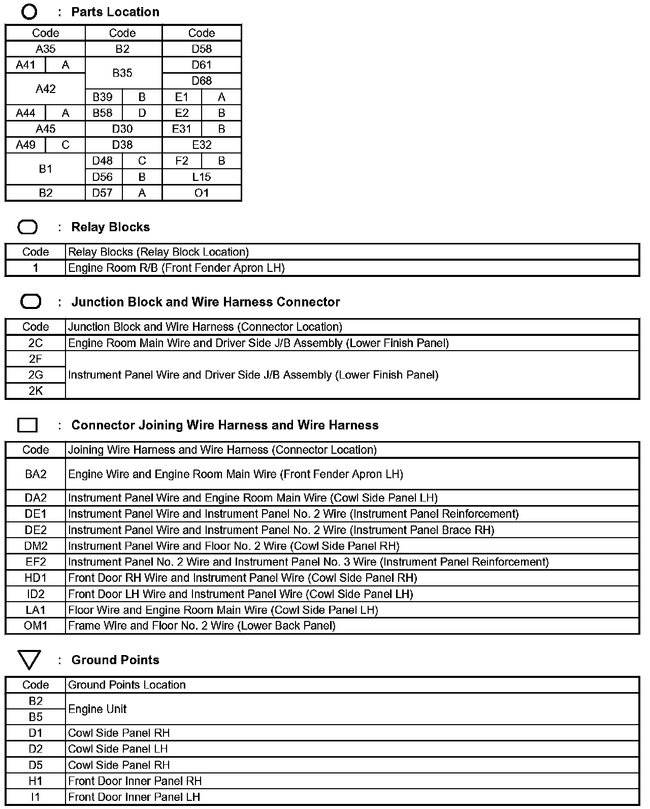 Locations: The locations of components, connectors, ground points, and splices referred to within these diagrams can be found at Vehicle Locations. Locations