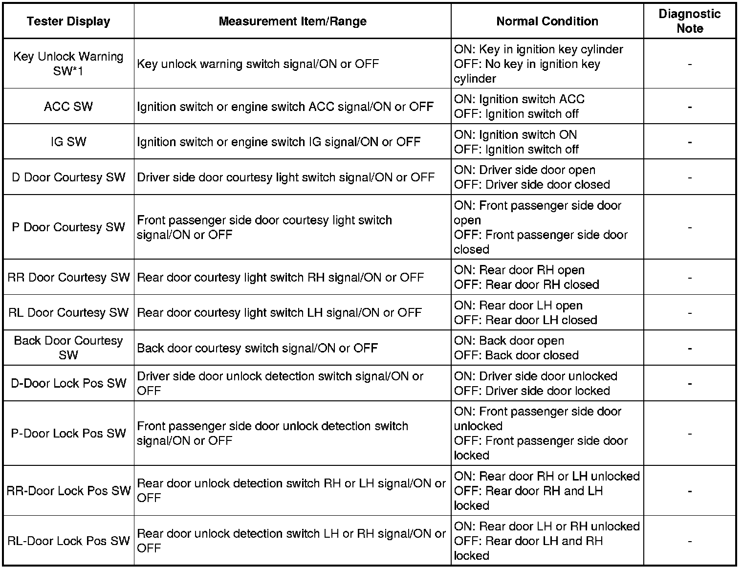 *1: w/o Smart Key System