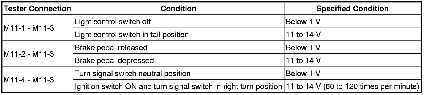 If the result is not as specified, repair or replace the wire harness or connector.