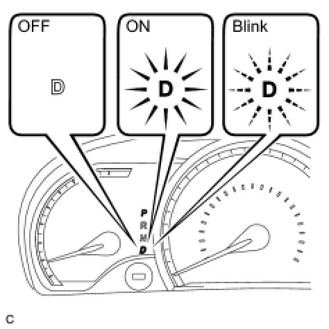 In the fluid temperature detection mode, the D shift indicator comes on, goes off, or blinks depending on the fluid temperature.