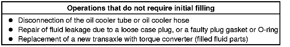 After performing any of the following operations, it is not necessary to perform the initial filling procedure. Proceed to the Add Specified Amount of Fluid procedure.