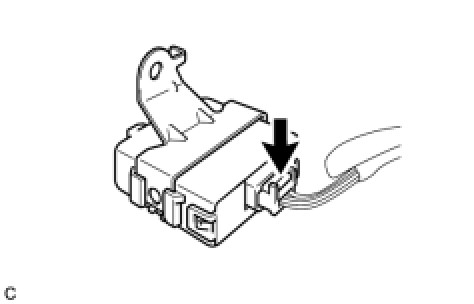 Engage the tab into the hole as shown in the illustration to install the tire pressure warning ECU.
