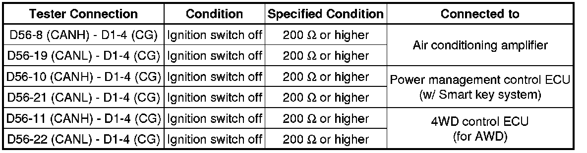 * Before measuring the resistance, leave the vehicle as is for at least 1 minute and do not operate the ignition switch, any other switches or the doors. If any doors need to be opened in order to check connectors, open the doors and leave them open.