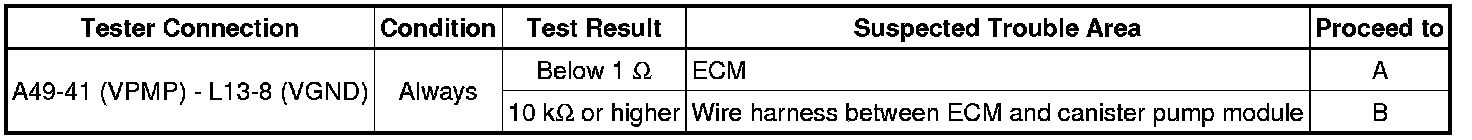 B -- CHECK HARNESS AND CONNECTOR (ECM - CANISTER PUMP MODULE)