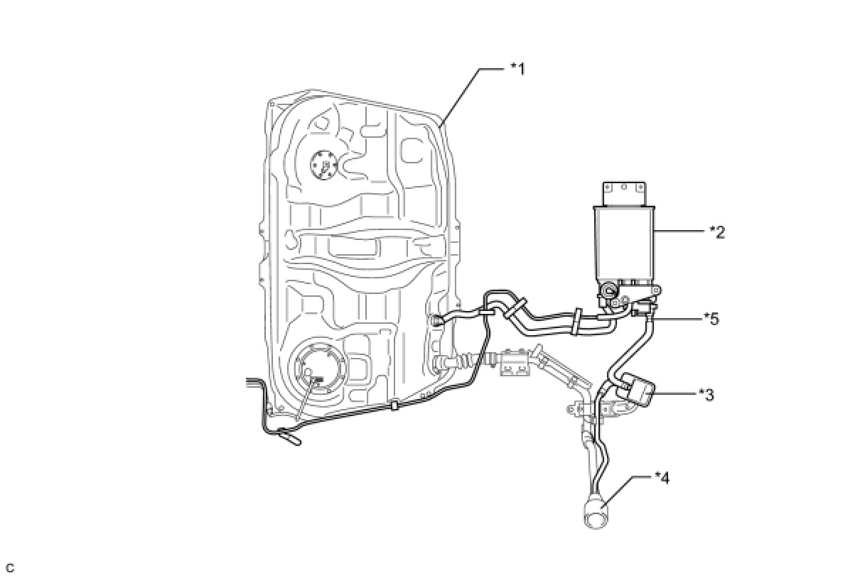 Disconnect the hose between the canister and fuel tank from the canister. Block the charcoal canister assembly side and conduct an inspection. In this way, the fuel tank can be excluded as an area suspected of causing fuel leaks.
