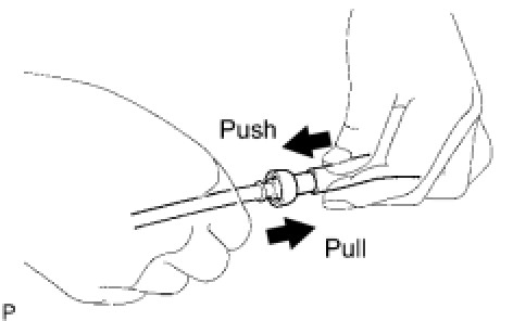 (2) Match the axis of the connector with the axis of the pipe, and push into the connector until the connector makes a "click" sound. If the connection is tight, apply a small amount of clean engine oil to the tip of the pipe.