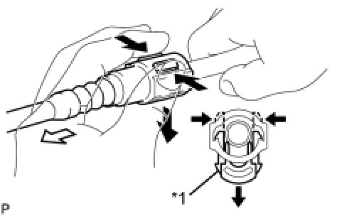 (8) Slide SST and the fuel tube connector together toward the fuel tube until they make a "click" sound, and then disconnect the fuel tube.