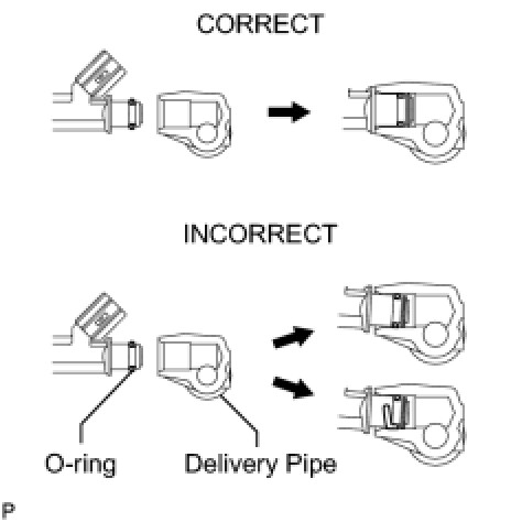 Before installing the injector, be sure to apply a light coat of gasoline or spindle oil where the delivery pipe contacts the injector O-ring.