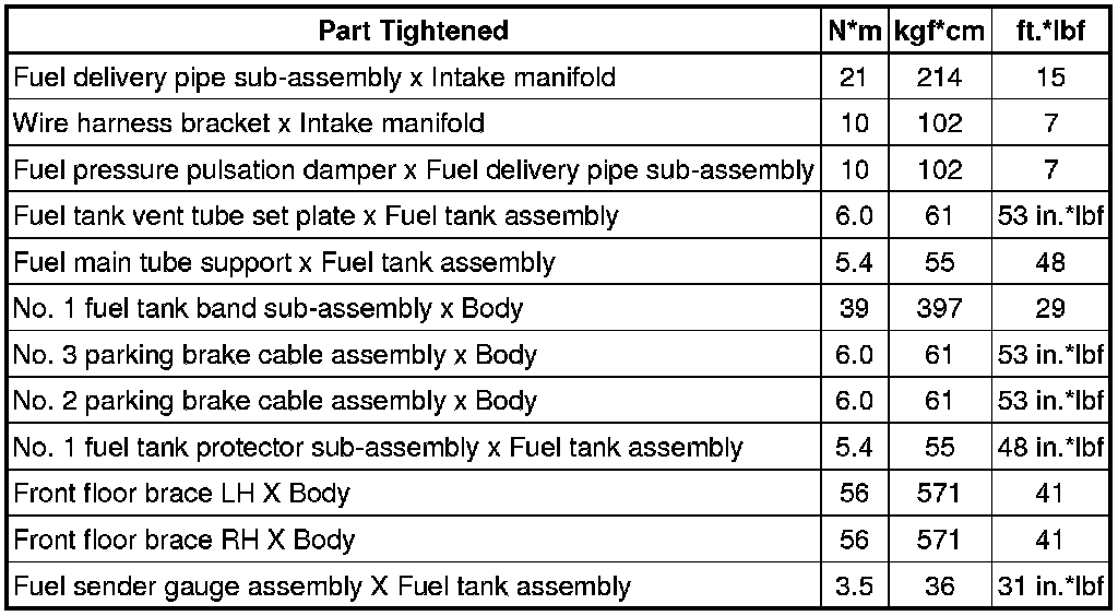SPECIFICATIONS: 1AR-FE FUEL: TORQUE SPECIFICATIONS