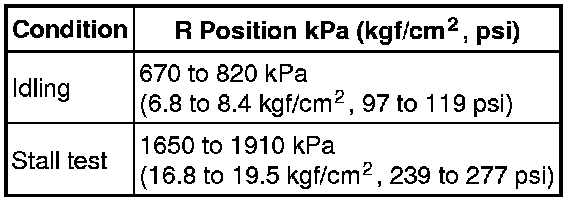 (14) Firmly depress the brake pedal, move the shift lever to D, depress the accelerator pedal all the way down, and check the line pressure while the stall test is performed.