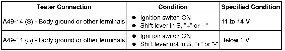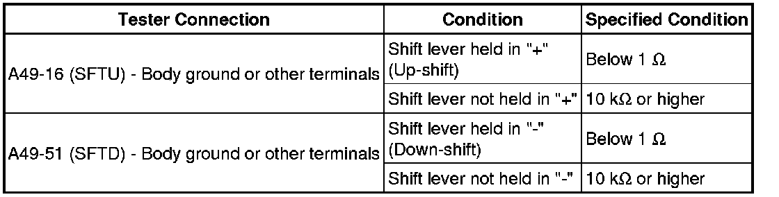 (a) Measure the resistance between each terminal of the transmission control switch when the shift lever is moved to each position.