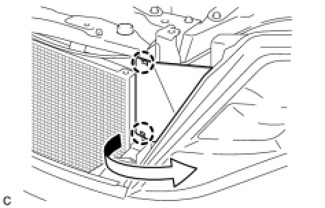 (g) Install the radiator side deflector LH with the 2 claws as shown in the illustration.
