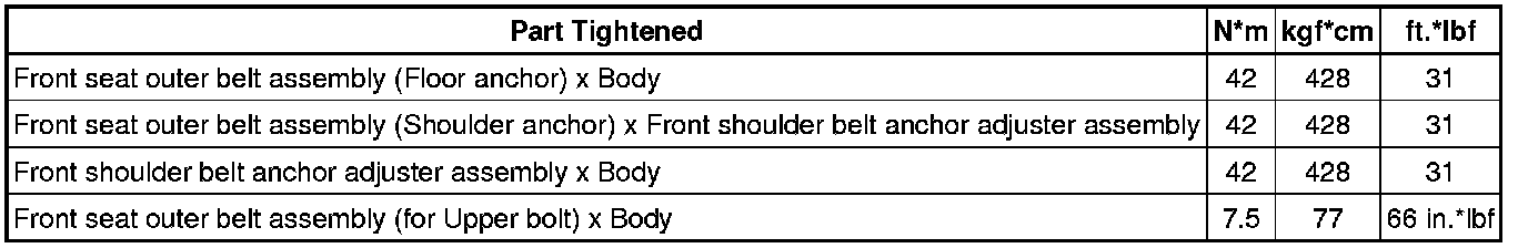 SPECIFICATIONS: SEAT BELT: TORQUE SPECIFICATIONS