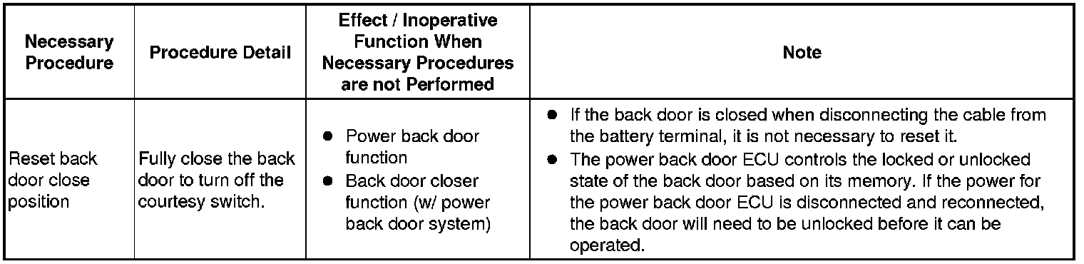 1. PROCEDURES NECESSARY WHEN BATTERY TERMINAL IS DISCONNECTED/RECONNECTED