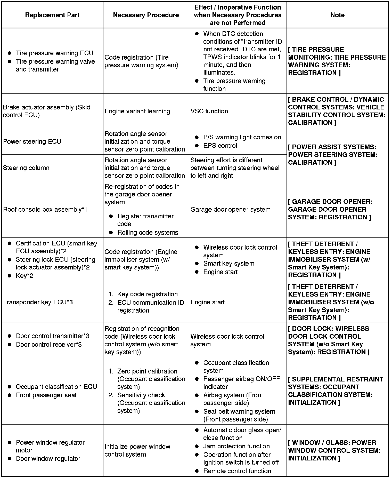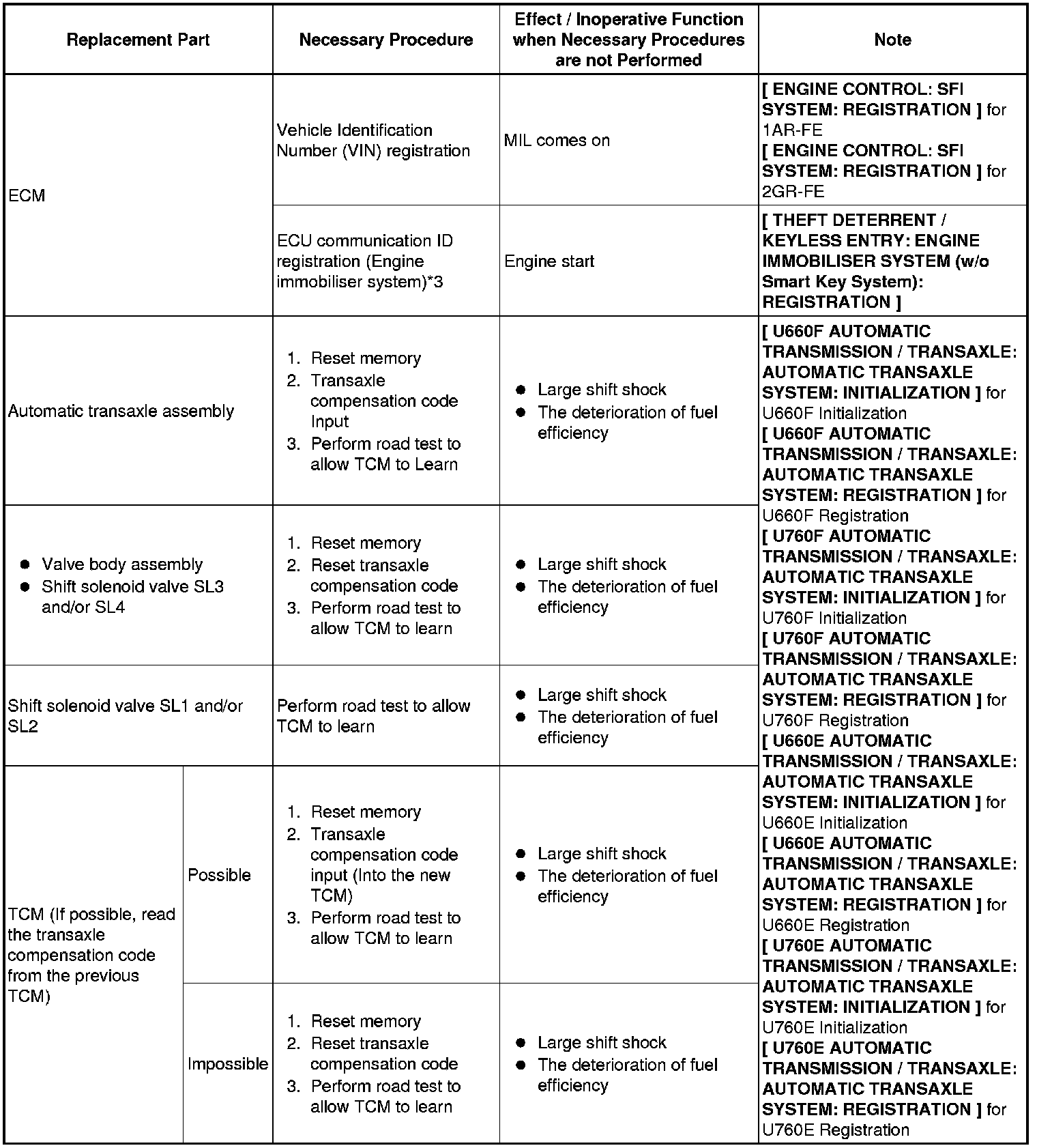 2. PROCEDURES NECESSARY WHEN ECU OR OTHER PARTS ARE REPLACED