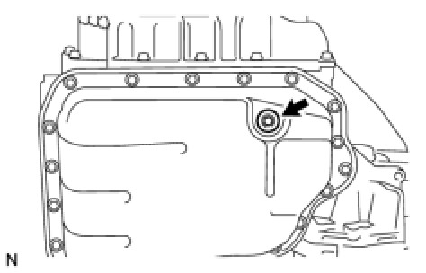 (a) Using a hexagon wrench (6 mm), remove the overflow plug from the automatic transaxle oil pan sub-assembly.