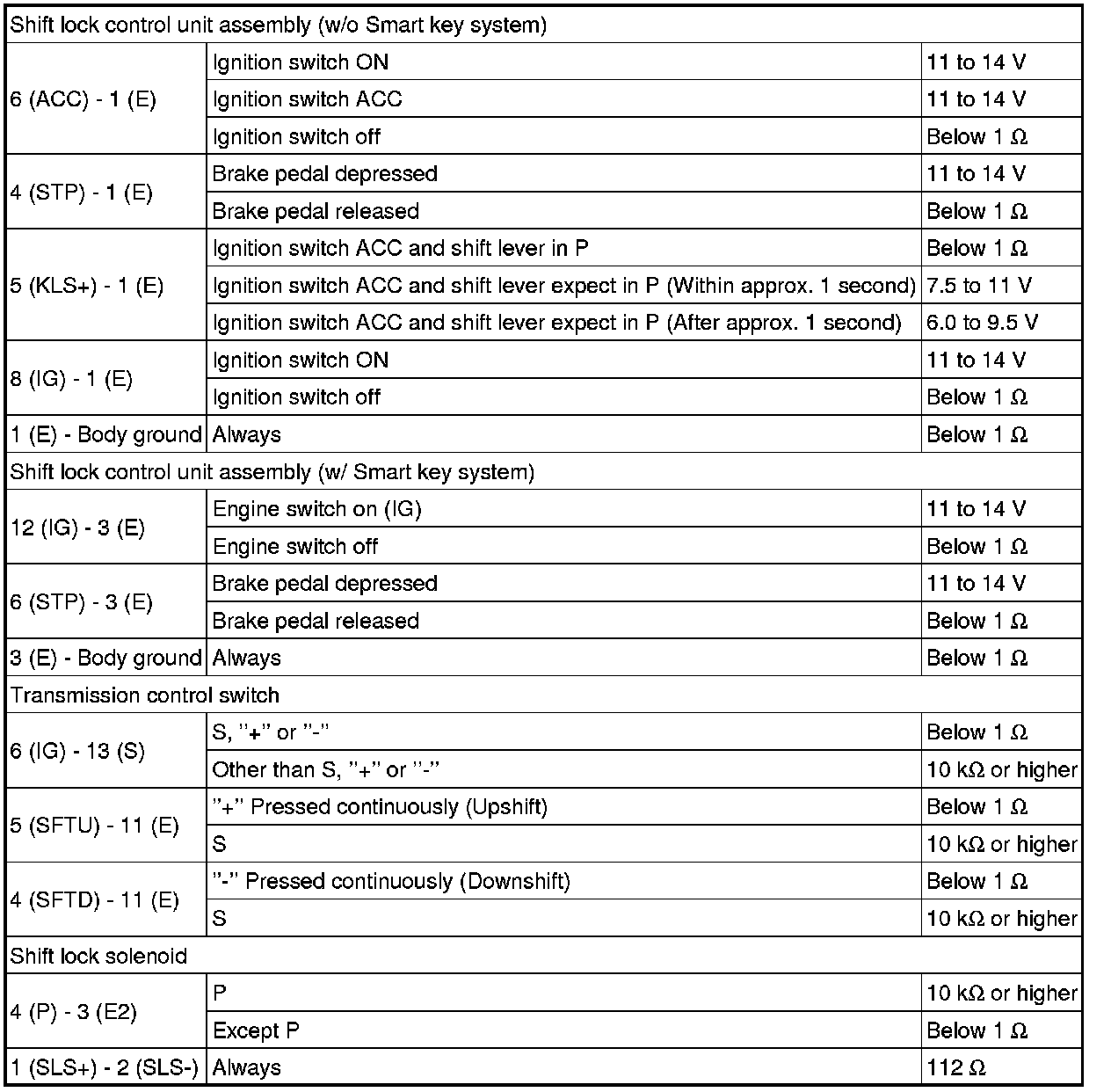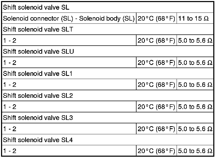 SPECIFICATIONS: U760F AUTOMATIC TRANSMISSION / TRANSAXLE: SERVICE DATA