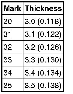 0.601 to 0.819 mm (0.0237 to 0.0322 in.)
