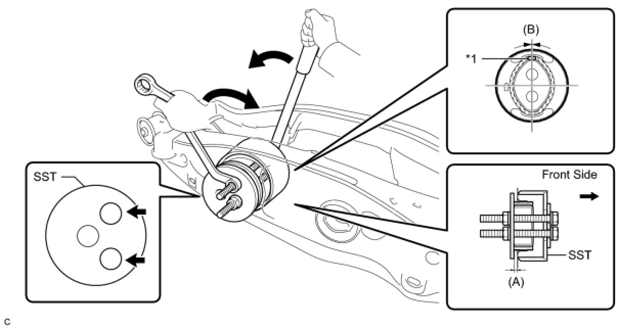 * Temporarily install the rear No. 1 differential mount cushion to the rear suspension member before installing SST to prevent the rear No. 1 differential mount cushion from being tilted.