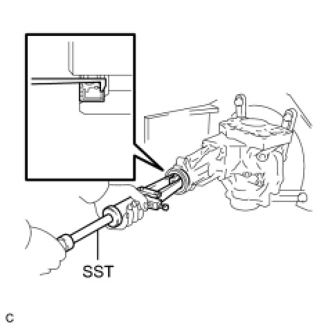 (a) Using SST, remove the transfer case rear oil seal from the transfer extension housing sub-assembly.