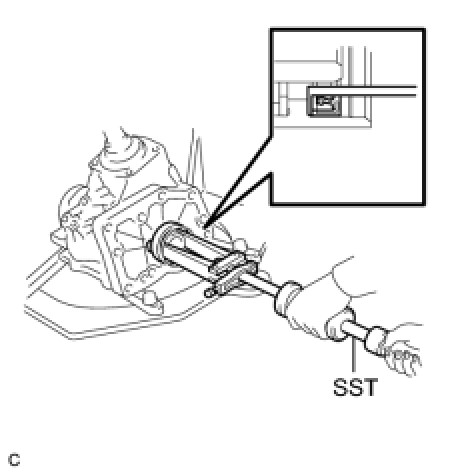 (c) Using SST, remove the ring gear mounting case bearing (inner race) from the transfer ring gear mounting case.